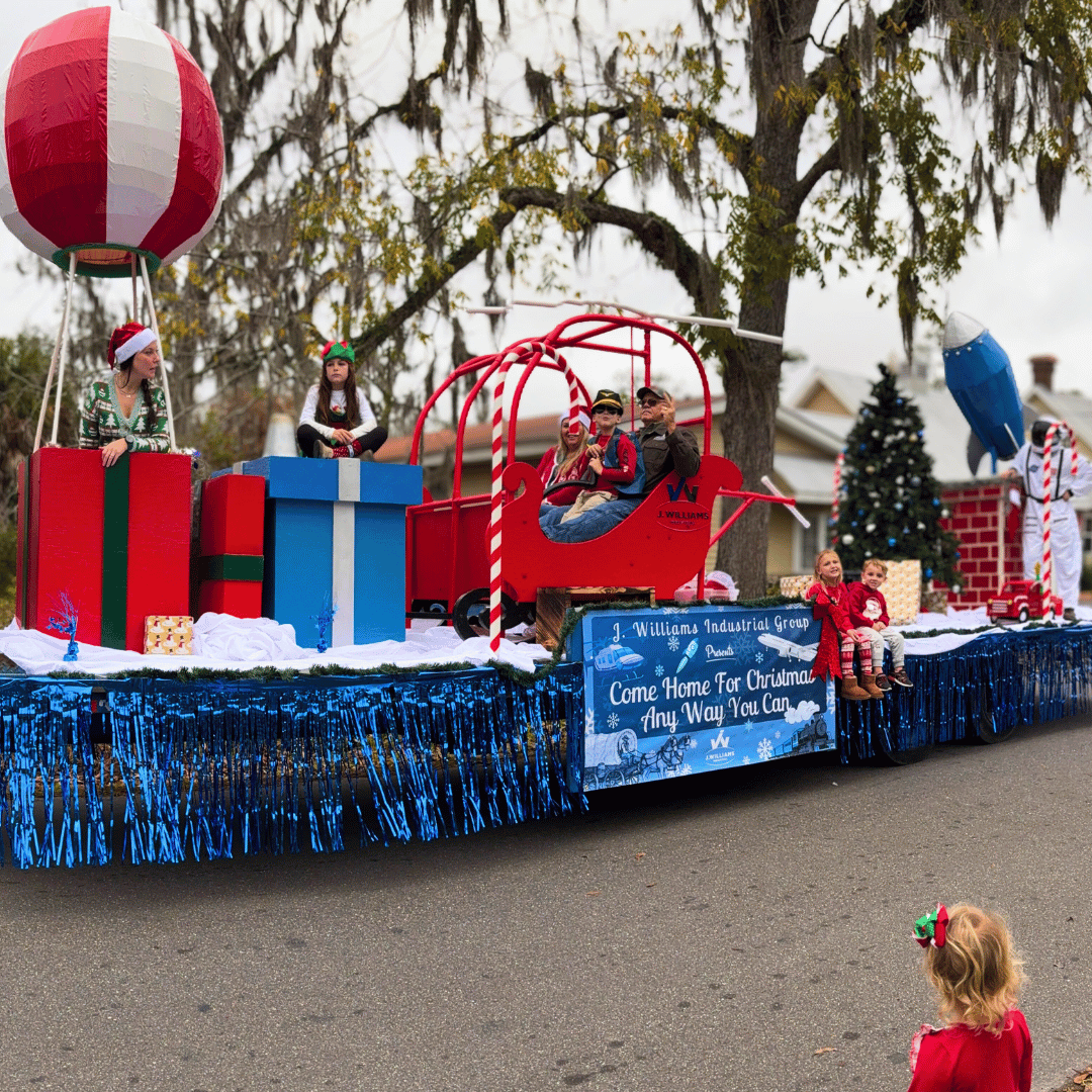Our team at J. Williams Industrial Group had the honor of participating in the annual Callahan Christmas Parade, a beloved tradition that brings families, neighbors, and local businesses together to celebrate the season. This year’s parade theme encouraged everyone to “Come home for Christmas any way you can,” and our team embraced that message with imagination, craftsmanship, and heart.